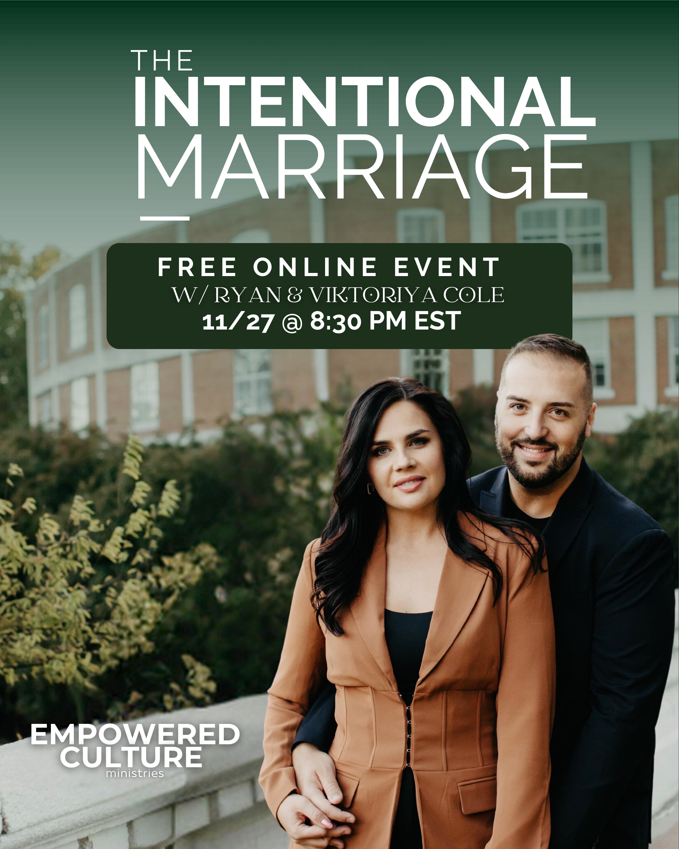 We believe that 2024 can be the greatest year of growth, communication, romance, and intimacy between you and your spouse. That's why we at Empowered Culture Ministries have decided to host one more marriage event before the year is over!